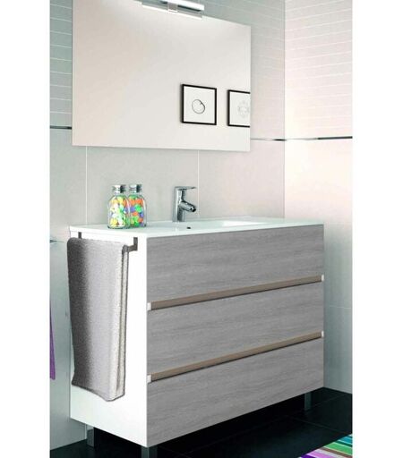 Allstone - Ensemble de salle de bain Imperia 3 tiroirs – 10 couleurs différentes – 15 dimensions – Meuble, lavabo et miroir – Combi (Blanc et Smoky)