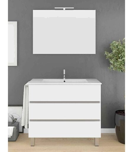 Allstone - Ensemble de salle de bain Imperia 3 tiroirs – 10 couleurs différentes – 15 dimensions – Meuble, lavabo et miroir – Blanc 100x40Cm