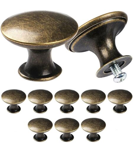 Lot de 10 boutons d'armoire vintage chic,Poignées de placard de cuisine de style antique,30 mm, Bronze,OUYLAF