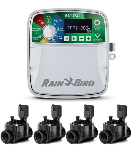 Rain Bird - Programmateur automatique d'arrosage Electrique ESP-TM2 4 zones intérieur + 4 Electrovannes 100HV 24V 1''