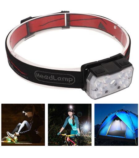 DEBUNS Lampe frontale led à focale fixe avec capteur super lumineux IPX4 étanche et rechargeable avec lumière rouge et blanche pour l'extérieur,DUBUNS