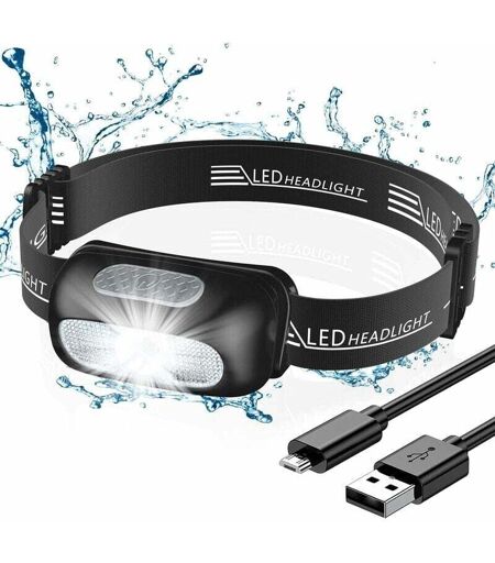 DEBUNS Lampe Frontale, Rechargeable Puissante avec 5 Modes D'éclairage, Étanche IPX4, Portable Lampe Frontale led avec Lumière Rouge pour La