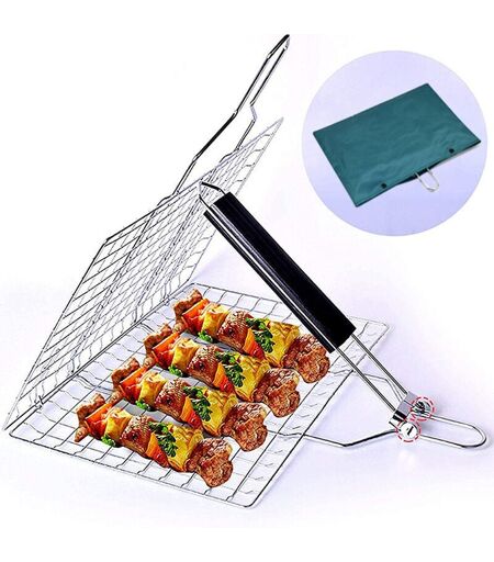 DEBUNS Panier à Griller, Panier de Barbecue En Acier Inoxydable, Panier Grille pour Barbecue, Acier Inoxydable Pliable Panier à Poisson En Acier Inoxydable