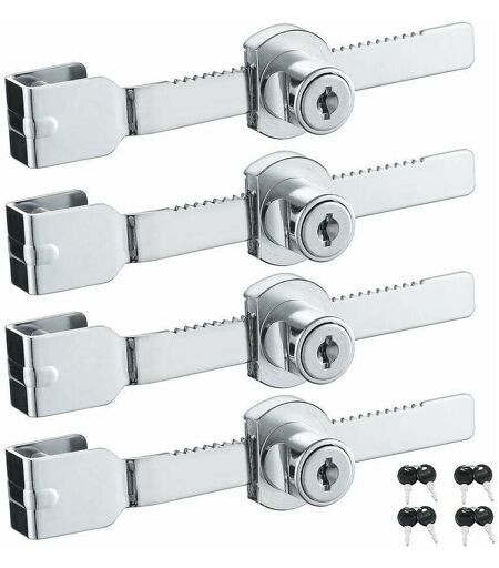 Lot de 4 verrous de porte coulissante en verre avec finition chromée, clés identiques,petites,GU.B/bon thsinde- Trimec