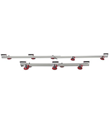 Description générale Le système de transport SLIM EASYTRANS est spécialement conçu pour la manipulation de dalles de grès cérame de grand format et d'épaisseur fine, pouvant atteindre 320 cm de longueur. Il est idéal pour le transport de carreaux en cérame et peut être utilisé en complément des systèmes de coupe comme le SLIM CUTTER et le TC-125. Spécifications techniques Deux guides rétractables et ajustables de 160 cm à 320 cm Dix ventouses de soutien incluses Charge maximale de l'ensemble : 60 kg (extensible jusqu'à 110 kg avec des ventouses supplémentaires) Conçu pour des carreaux jusqu'à 3 mètres Compatibilité et accessoires Système complémentaire au Slim System Cutter (Réf : 18911) Installation Pour une fixation correcte, assurez-vous que la surface de la dalle est propre et exempte de poussière ou de débris. Les ventouses s'adaptent aux surfaces lisses et légèrement structurées. Utilisation Le SLIM EASYTRANS permet un ajustement précis des points de fixation grâce à ses ...