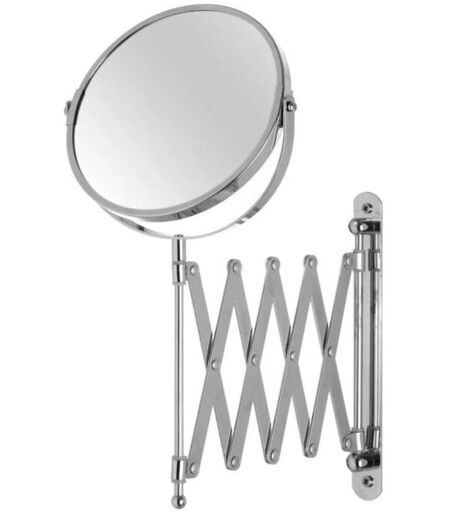 Miroir grossissant x2 à fixer sur le mur monté sur bras extensible pantographe. Ce miroir mural est à double face avec une face grossissante x2 et une face normale. Dimensions : diamètre 18.5cm x Longueur 68cm x largeur 18.5cm Couleur : Chrome Matière : Métal et Verre ...