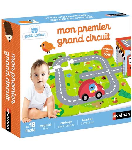 NATHAN Mon premier circuit - NATHAN Mon premier circuit - 1 voiture en bois, 1 garage + 1 tunnel a monter, 9 cartes-puzzles - Un circuit a assembler pour jouer avec la voiture et imaginer plusieurs scénarios - De nombreuses configurations possibles - Aide au développement du langage ... ...