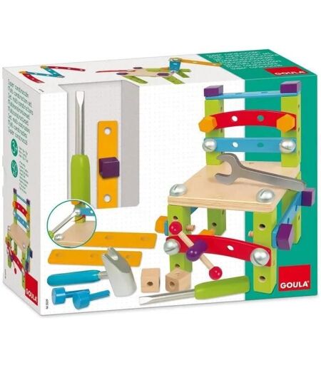 Un set de construction pour les bricoleurs en herbe. A partir des mêmes pièces, 7 modèles différents : une chaise, un chariot ... Contenu : 37 pièces en bois, 3 outils aux bords arrondis et 1 guide de construction. Dimensions : 31 x 25 x 16 cm. ...