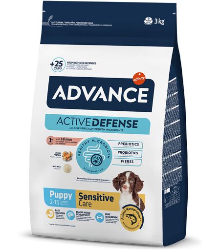 Les croquettes Advance Puppy Sensitive au saumon ont été spécialement formulées pour les chiots âgés de 2 à 12 mois qui souffrent d'allergies ou d'intolérances à certaines protéines provenant de la viande. Cet aliment de qualité contient du saumon... ...