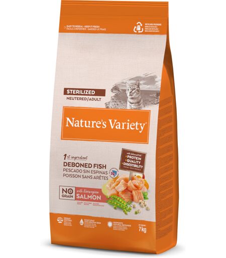 7kg Nature's Variety Selected Sterilised saumon de Norvège - Croquettes pour chat