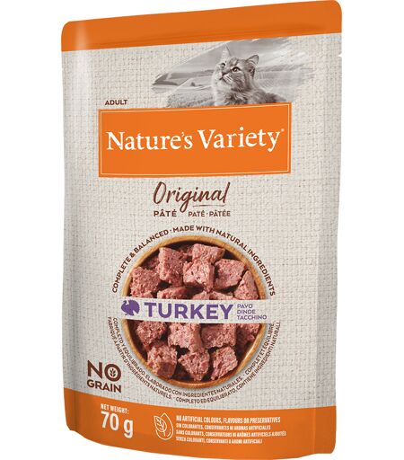 12x70g Nature's Variety Original Paté No Grain, dinde - Pâtée pour chat