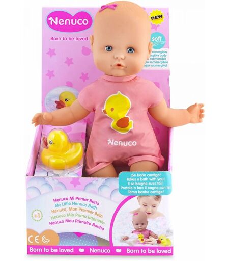 NENUCO - Bain - Poupon 35cm NENUCO - Poupon de 35 cm au corps spécialement conçu pour aller dans l'eau. Contient un canard en plastique qui change de couleur lorsqu'il est immergé dans l'eau. ...