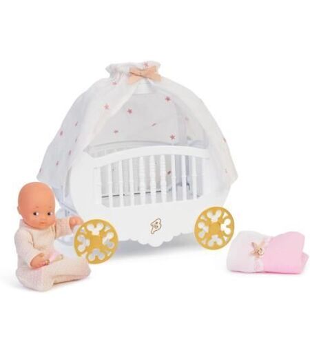 La crèche Barriguitas en forme de carrosse de princesse est un jouet idéal pour les petites filles de 3 ans et plus. Elle est livrée avec une poupée bébé Barriguitas de 13 cm, de la literie et une turboulette. La crèche est équipée d'une lumière et fonctionne avec des piles incluses. La garantie est de 2 ans. ...