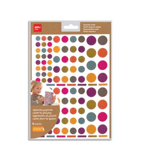 Pochette de 6 feuilles Apli Kids 624 gommettes - nature kraft - couleurs assorties