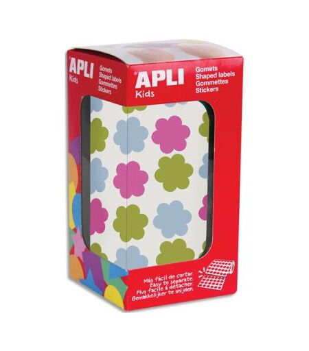 Boîte de 900 gommettes en rouleau forme fleurs Apli Kids 20mm - couleurs assorties (bleu, rose, et vert)