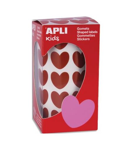 Boîte de gommettes en rouleau Apli Kids forme coeur - 20 x 18 mm - couleur rouge