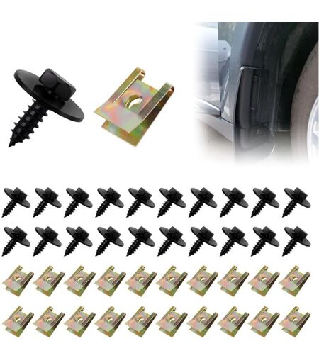 【Emballage du produit】Cet ensemble contient 20 vis autotaraudeuses et 20 clips de fixation de type U. Ce qui vous fournit un approvisionnement suffisant pour plusieurs installations ou remplacements. Convient pour l'entretien quotidien de la voiture à domicile ou pour l'entretien professionnel de la voiture. 【Matériaux de haute qualité】 La vis à tôle est fabriquée en acier au manganèse de haute qualité, en matériau métallique, durable et résistant. Solide et résistant à l'usure, haute résistance, pas facile à casser, forte résistance à l'oxydation et à la corrosion, la surface n'est pas facile à oxyder et à décolorer, idéale pour les pièces automobiles. 【Base de support en forme de U】 Les supports de montage en forme de U sont utilisés pour améliorer l'étanchéité de l'installation, réduire le gaspillage de vis, beaux et pratiques et s'adaptent parfaitement à votre voiture. 【Facile à installer】 L'écrou en tôle fixe est intégralement moulé avec un joint autonome qui ne glisse pas ...
