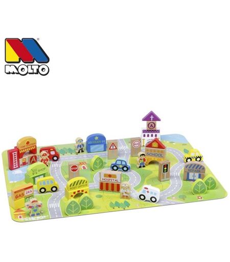 Assemble le puzzle pour créer ton village en bois. 79 accesoires. Dim : 60 x 43 x 9 cm. ...
