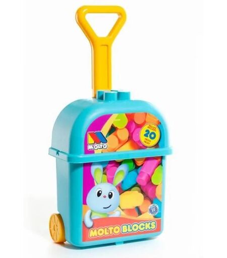 Molto Chariot De Blocs Bleus Moltó. Inclus 20 Pièces.