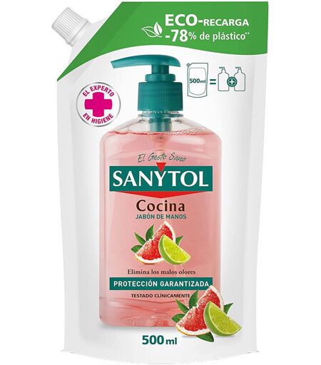 Recharge de savon antibactérien pour les mains SANYTOL pour la cuisine, pack écologique. Savon pour les mains. Green beauty: Emballage durable, Rechargeable et rechargeable ...