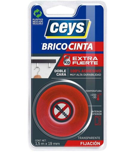 Ceys Brico Tape Extra Strong Transparent 1,5m. Résistance Intérieure Et Extérieure Maximale Sur Tous Les Matériaux ...