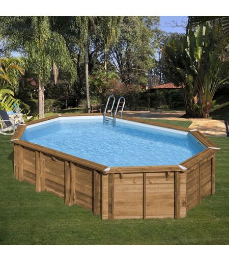 GRE - Piscine bois safran 2 6,20m x 3,95m x h: 1,36m