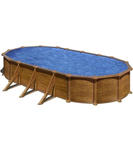 Gre Piscine ovale acier 7,44m x 3,99m x H: 1,32m - Imitation bois - Filtration à sable - Renforts apparents