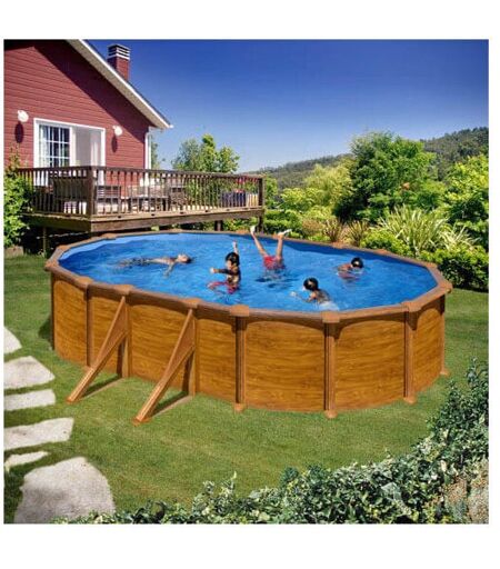 Description générale Cette piscine hors-sol ovale Pacific de la marque Gre allie élégance et robustesse avec son aspect bois. Idéale pour les baignades en famille, elle offre un volume d'eau de 20,9 m³ et des dimensions extérieures de 6,34 x 3,99 m pour une hauteur de 1,22 m. Spécifications techniques Dimensions extérieures : 6,34 x 3,99 x 1,22 m Dimensions intérieures : 6,10 x 3,75 x 1,20 m Volume d'eau : 20,9 m³ Épaisseur du liner : 40/100 Structure : Acier galvanisé Filtration à sable : 3 m³/h Garantie : 4 ans sur la structure, 2 ans sur le liner et les accessoires Compatibilité et accessoires Échelle de sécurité : 2 x 3 marches Skimmer inclus Système de filtration à sable avec sable fourni Accessoires : tuyaux de connexion et plateforme pour échelle Installation Montage : environ 7 heures à 2-3 personnes Installation hors-sol, sans excavation nécessaire Radier en béton en option Utilisation Cette piscine est conçue pour un usage familial, offrant un grand espace de baignade et de ...