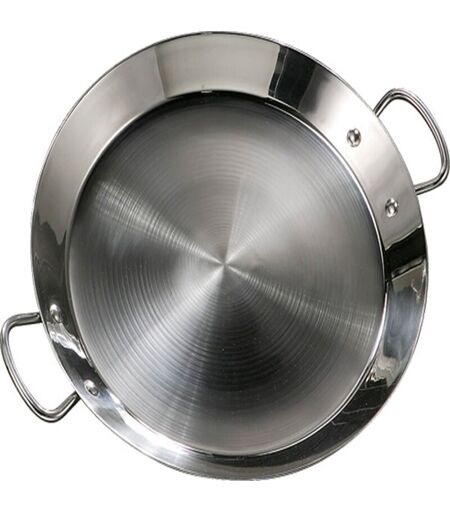 Poêle à paella en acier inoxydable pour induction 36 cm.-Fabriquée en matériaux de haute qualité.-Dimensions du dessus 36 cm.-Dimensions de la base : 30 cm.-Pour 5 ou 7 portions. ...