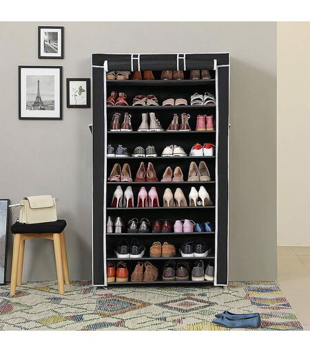 L'armoire à chaussures non tissée confortable et respirante de haute qualité s'intègre parfaitement dans le dressing, le hall et la chambre. Chaque étagère contient 5 paires de chaussures pour femmes et 4 paires de chaussures pour hommes. La porte a des charnières et un velcro, lorsqu'elle est fermée, protège efficacement les chaussures de la poussière et de la saleté. Il résout très bien le problème des chaussures dans le chaos, garde les chaussures en ordre dans le placard. Détails: - Dimensions : 88 x 28 x 160 cm (L x l x H) - Taille du colis : 90 x 20 x 10 cm - Hauteur plateau : 17 cm - Matière : Structure en acier (Φ12 mm), tissu en TNT (tissu non tissé) - Poids : 2,8kg - Couleur noire Contenu du colis: - 1 étagère à chaussures - 1 notice de montage Noter: 1. Il est interdit d'exposer l'armoire à chaussures au soleil, sinon la durée d'utilisation sera réduite. Il peut être conservé dans un endroit frais et sec afin d'éviter l'apparition de moisissures. 2. N'ouvrez pas l'emballage ...