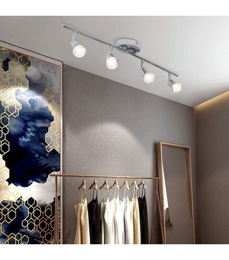Description Ce plafonnier LED est un diffuseur de lumière polyvalent qui assure un éclairage confortable dans votre maison grâce à sa couleur de lumière blanc chaud. Les quatre spots sont orientables et pivotants et peuvent donc être réglés à volonté. En outre, les bras du luminaire sont également réglables, ce qui offre une flexibilité supplémentaire à l'éclairage. Ce plafonnier LED en s'intègre dans tous les intérieurs grâce à son design sobre. Pour la chambre d'enfant, la chambre à coucher, le salon ou comme lampe de cuisine. Le plafonnier à 4 flammes possède des spots pivotants et orientables. Caractéristiques techniques du luminaire : Douille : GU10 Température de couleur : 6500K Puissance lumineuse : 400lm Tension : 85-265v Pas de gradation possible Matériau : Acier inoxydable Les spots sont orientables et pivotants Dimensions : 62*10*10cm Contenu de la livraison : 1x plafonnier 4x ampoules GU10 ...
