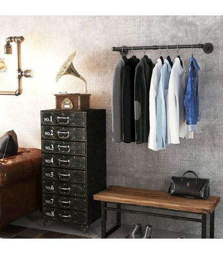 SKECTEN Tringle à vêtements murale style industriel en fer rustique, barre de rangement et exposition pour magasin, salon, armoire noir