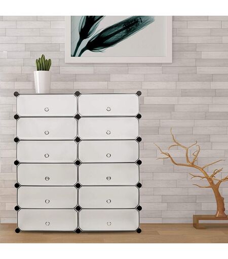 Skecten - Armoire Etagère de Rangement à Chaussures en Plastique Blanche Semi-Transparente 12 Cubes 91 x 36 x 105 cm (l x l x h)
