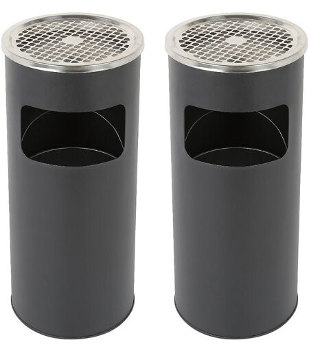 BATHRINS 2 Poubelles Cylindriques en Acier Inoxydable avec design de corbeille intérieure amovible et cendrier extérieur 25×25×60cm Noir