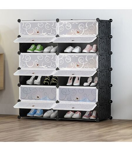 Wyctin - Hofuton Armoire à Chaussures Meuble à Chaussures Etagère Avec Portes Plastique 12 Cubes Facile à Monter, Etagère de Rangement Pratique