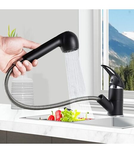 Skecten - Mitigeur de Cuisine Mitigeur Évier avec Douchette Rotatif 360° Deux jets au Choix Noir