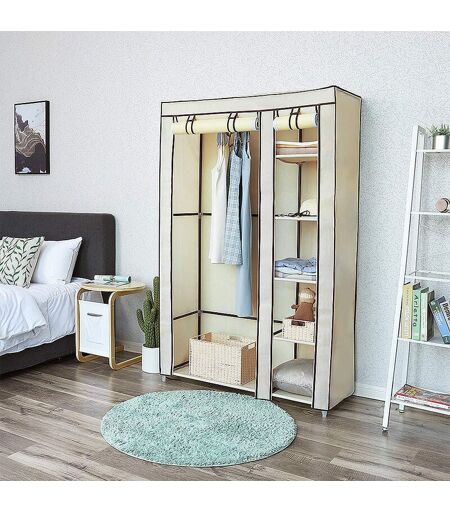 SKECTEN Armoire de Rangement Dressing Penderie de Vêtement Pliable en Tissu Non Tissé 110 x 45 x 175 cm Beige
