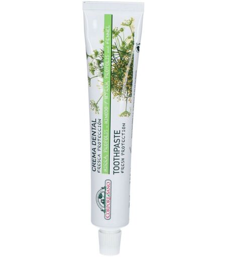 Dentifrice naturel pour une bonne hygiène dentaire et pour protéger l’émail. La Myrrhe et la Propolis nettoient les dents en profondeur et ont un effet protecteur et anti-inflammatoire sur les gencives. Le fenouil donne un arôme agréable et une sensation fraîche. Sans fluor.BénéficesBouche propre et saineÉmail protégéConseils d'utilisationUsage fréquent, à utiliser après chaque repas.CompositionDicalciumphosphate dihydrate, eau, sorbitol, silica, kaolin, sodium lauryl sulphate, gomme cellulose, arôme, d-limonène, extrait de myrrhe, extrait de fenouil et de propolis, propanediol, glycérine, saccharine de sodium, phenoxyethanol, sorbate de potassium, benzoate de sodium, CI 42090, CI 19140ConditionnementTube de 75 ml ...