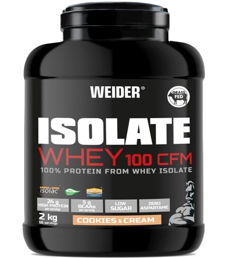 Isolate Whey 100 CFM de la marque Weider est une formule de protéine de lactosérum 100% isolée enrichie en enzymes digestives. Elle ne contient pas de sucre et sa teneur en matières grasses est faible. ...