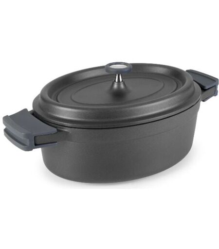 Existe en plusieurs tailles Cocotte ovale 26 cm Noire - Fundicion - La cocotte parfaite pour cuire tous vos plats : riz, viandes, poissons, légumes, plats mijotés, crèmes, sauces ou soupes ! - En fonte d'aluminium : garantit l'absorption et la distribution uniforme de la chaleur sans point de surchauffe - Les aliments ne perdent donc pas leur jus pendant la cuisson et conservent ainsi tous leurs nutriments et vitamines - Les picots, situés sous le couvercle, permettent aux gouttes, issues de la condensation, de retomber sur les aliments, formant ainsi un flux permanent de circulation qui réduit la perte des saveurs et des jus des aliments - Revêtement antiadhésif intérieur et extérieur Ilag Ultimate - Compatible four jusqu'à 260°C - Livré avec 2 sur-poignées et un protège-bouton de couvercle amovibles en silicone noir afin de manipuler la cocotte en toute sécurité - Diamètre 26 x 20 cm - Hauteur 9 cm - Capacité 3.5 L - Nettoyage facile : passe au lave-vaisselle - Tous feux dont ...