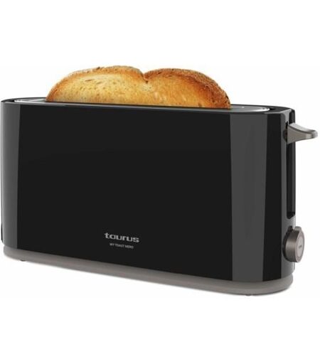 Mytoast NeroReferencia ? 960684000La tostadora Taurus Mytoast Nero es una tostadora de pan de gran potencia, con un diseño funcional y versátil. Cuenta con una única ranura larga, que permite tostar rebanadas de pequeño y gran tamaño. Sus 1000 W de potencia la convierten en una máquina de lo más rápida y eficiente. ¡Consigue las tostadas perfectas para tu desayuno con la tostadora Taurus Mytoast Nero y disfruta de cada bocado!Tostador de 1 ranura largaCuenta con una sola ranura de 260 mm de longitud y de 38 mm de anchura. Gracias a su tamaño es posible tostar varias rebanadas a la vez o, si se prefiere, una rebanada más grande.1000 W para evitar esperas, tuesta muy rápidamenteSu gran potencia hace que sea capaz de tostar de forma muy rápida. A pesar de esto, el tueste del pan es completamente uniforme y el calor homogéneo, por lo que no se quema.7 niveles de tostado y autocentrado de la tostadaEstos niveles de potencia te permitirán elegir el tueste más óptimo en cada caso. Además, el sistema de autocentrado de la tostada ayuda a repartir el calor de manera uniforme.Bandeja recogemigasGracias este mecanismo, limpiar la tostadora Taurus Mytoast Nero es rápido y sencillo. La bandeja recogemigas permite además que el interior de la tostadora se mantenga siempre limpio y sin restos, facilitando la higiene del aparato.Diseño eleganteLa tostadora Taurus Mytoast Nero está diseñada en negro y fabricada en un plástico ligero y fácil de limpiar. Cuenta con un diseño elegante que ...