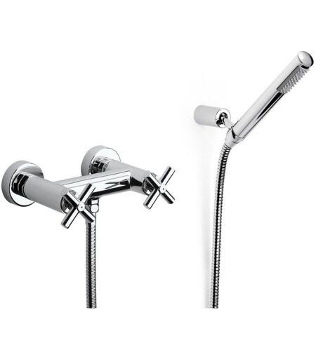 Mezclador bimando exterior ducha con ducha de mano, flexible de 1,50 m. y soporte articulado. Serie LOFT de Roca, dónde el diseño vanguardista y la tecnología se funden en elementos de gran calidad y resistencia. Un estilo atemporal, funcional y original. Acabado cromado. Bimando: 1/2 vuelta. Instalación para ducha mural. ...