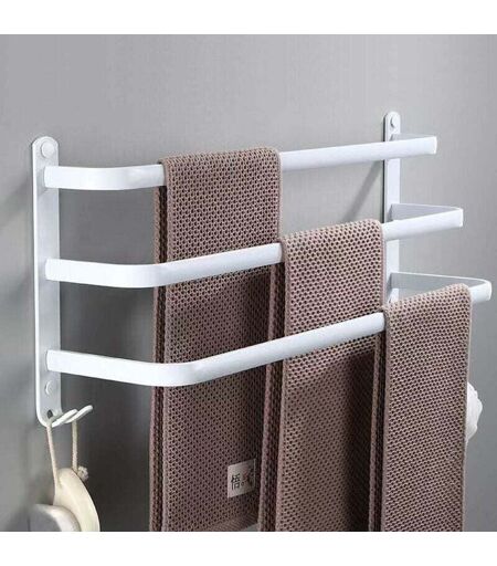 GROOFOO Porte-Serviettes Mural en Aluminium - 3 Étages - Avec Crochets - 60 cm - Étanche - Blanc - Pour Salle de Bain, Cuisine, Salle de Bain