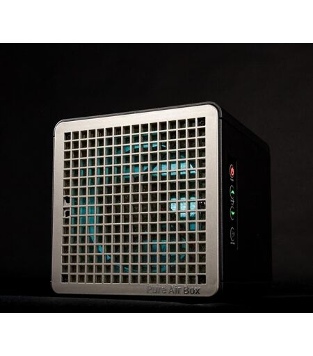 Pure Air Box est un appareil compact et étonnamment puissant pour éliminer les odeurs et tous types de micro-organismes. La technologie PCO? élimine 99,99% des virus, bactéries et microbes de l?air et des surfaces. Non-toxique et n?utilisant pas de produits chimiques tels que les aérosols ni de liquides, cet appareil peut être utilisé en présence de personnes et d?animaux domestiques. Conçu pour désinfecter et purifier n?importe quels espaces (maison, bureaux, magasin, etc.) sans interruption 24h/24, 7jours/7. Écologique, d?entretien facile et d?une consommation électrique négligeable. Il purifie et désinfecte l?espace où il est mis en marche grâce à son fonctionnement combinant la technologie PCO? avec l?ionisation et l?oxydation photocatalytique. Ionise ? désodorise - désinfecte et oxygène prenant ainsi soin de vous et des personnes qui vous entourent. Les + du produit Élimine les bactéries, virus et tous types de microorganismes se trouvant à la fois dans l?air et sur les surfaces. Élimine les champignons et les odeurs. Élimine les impuretés de l?air. Atténue les symptômes des allergies, tels que la toux, les éternuements, le picotement des yeux ou encore le larmoiement. Ne nécessite aucune installation. Il vous suffira de le brancher pour le faire fonctionner. Élégant, petit, léger et transportable. Caractéristiques techniques Flux d?air : 1,61 m/s Puissance : 21 W Pour des pièces jusqu?à : 140 m2 Élimine les virus, bactéries et microbes de l?air et des surfaces. UVPCOTM (Ultra-Violet Photocatalytic Oxidation). Plaque d?ozone O3. Oxydation Photocatalytique. 3 vitesses de ventilation. Niveau sonore : 12 dB / 17 dB / 25 dB 2 modes de fonctionnement : Normal et « Away » (2 heures) Minuterie : Mode « Away » (2 heures) Dimensions (L x L x H) : 165 x 165 x 178 mm ...