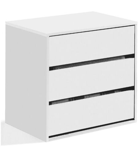 Description générale La commode à 3 tiroirs en blanc mat est le meuble idéal pour optimiser l'espace de rangement dans votre chambre, salon, ou tout autre pièce. Avec ses dimensions de 60 cm de large, 44 cm de profondeur, et 57 cm de hauteur, elle combine modernité et fonctionnalité, tout en s'intégrant harmonieusement dans différents styles de décoration. Spécifications techniques Matériaux : Panneaux de particules mélaminés de 15 mm d'épaisseur Finition : Blanc mat Poids : 15 kg Capacité de chaque tiroir : 10 cm (hauteur) x 54 cm (largeur) x 35 cm (profondeur) Poids maximum supporté par tiroir : 5 kg Poids maximum supporté total : 15 kg Classification formaldéhyde : TYPE E1 Compatibilité et accessoires Cette commode est conçue pour être utilisée individuellement ou en complément d'armoires dont l'espace intérieur est supérieur à 60 cm de largeur et 44 cm de profondeur. Elle peut être associée à divers ensembles de meubles pour un rangement optimal. Installation La commode est livrée ...