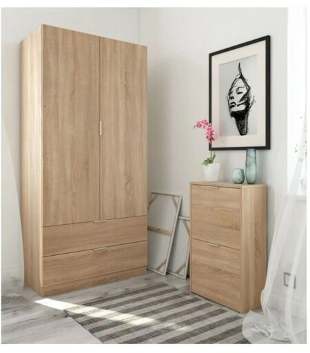 USINESTREET Armoire penderie 2 portes + 2 tiroirs L81 x H180 cm - CaliCosy - Chêne clair