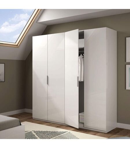 No Brand - Armoire 4 Portes blanc brillant 180x200 cm