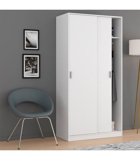 HABITDESIGN Armoire ENZO 2 portes coulissantes L100 x H200cm - Blanc - Blanc