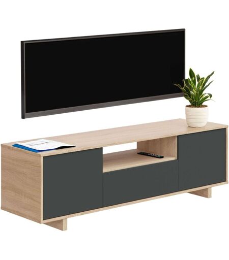 HABITDESIGN Meuble TV Zaira en gris anthracite et chêne canadien avec 3 portes 46x150x41 cm