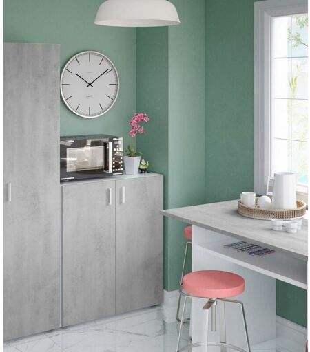 ARMOIRE POLYVALENTE - Armoire basse polyvalente pratique, équipée de deux portes battantes et d'une étagère réglable en hauteur pouvant être utilisée comme étagère à chaussures, armoire ou comme casier pour ranger tout type d'objet, en couleur béton et blanc. STRUCTURE ET UTILISATION - Sa polyvalence et son style simple lui permettent d'être placé dans n'importe quelle pièce - Peut être utilisé comme étagère à chaussures, petite armoire ou comme casier pour ranger tout type d'objet passant de la chambre, au placard / salle de bain ou sur le balcon de la maison. COMPOSITION - Construit entièrement en panneaux de particules mélaminés, un matériau résistant aux chocs et aux rayures, durable et imperméable, formé par une confortable étagère amovible et réglable en hauteur parfaite pour répondre aux besoins de chacun. CARACTÉRISTIQUES TECHNIQUES - Mesures en cm - 80 x 92 x 37 - Matériaux - Pièces en aggloméré mélaminé (classification TYPE E1 épaisseur 15 mm), Chants en PVC (Épaisseur - 0,6 ...